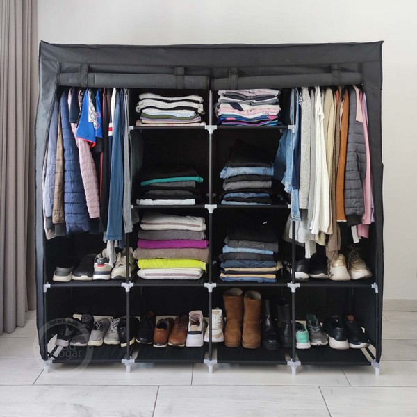 Práctico closet extra doble, está diseñado especialmente para ser resistente y al mismo tiempo, proteger tu ropa del polvo y la humedad, ya que su estructura es en tubo metálico y a diferencia de otros closets del mercado, sus entrepaños están mejorados, son fabricados en tela tifón gruesa que no cede y soporta más peso. Por otra parte, el forro está fabricado en tela no tejida, tela especialmente diseñada para proteger tu ropa del polvo, pelos de mascotas, humedad y demás factores que afectan nuestra ropa. Nuestro closet cuenta con 12 entrepaños y doble espacio para colgar la ropa, es liviano, portable y totalmente desarmable.