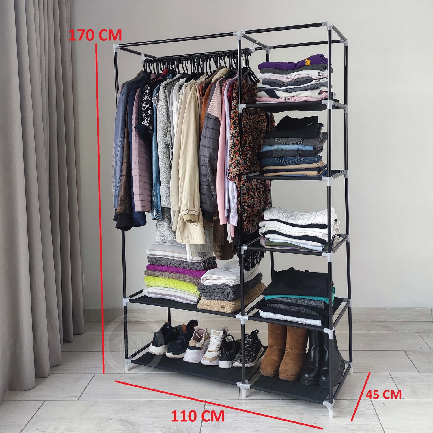 Práctico closet sencillo, está diseñado especialmente para ser resistente y al mismo tiempo, proteger tu ropa del polvo y la humedad, ya que su estructura es en tubo metálico y a diferencia de otros closets del mercado, sus entrepaños están mejorados, son fabricados en tela tifón gruesa que no cede y soporta más peso. Por otra parte, el forro está fabricado en tela no tejida, tela especialmente diseñada para proteger tu ropa del polvo, pelos de mascotas, humedad y demás factores que afectan nuestra ropa. Nuestro closet cuenta con 7 entrepaños y un espacio para colgar la ropa, es liviano, portable y totalmente desarmable.