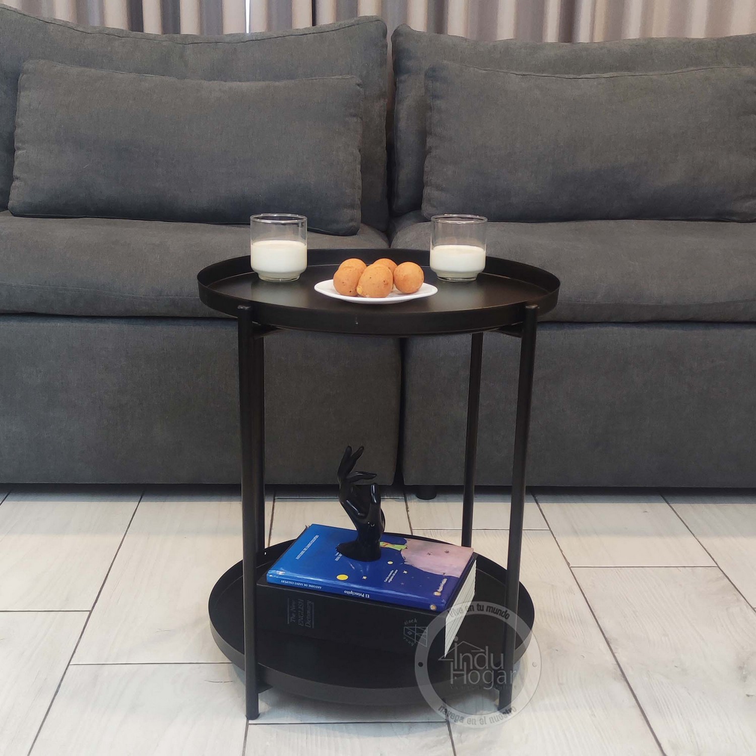 Practica mesa auxiliar con estructura en tubo y doble bandeja en lamina de acero con pintura electroestática negra. Gracias a que las bandejas son extraíbles y tiene bordes elevados, es segura para servir bebidas o alimentos. También la puedes usar como mesa de noche, mesa de centro o auxiliar para el hogar.
