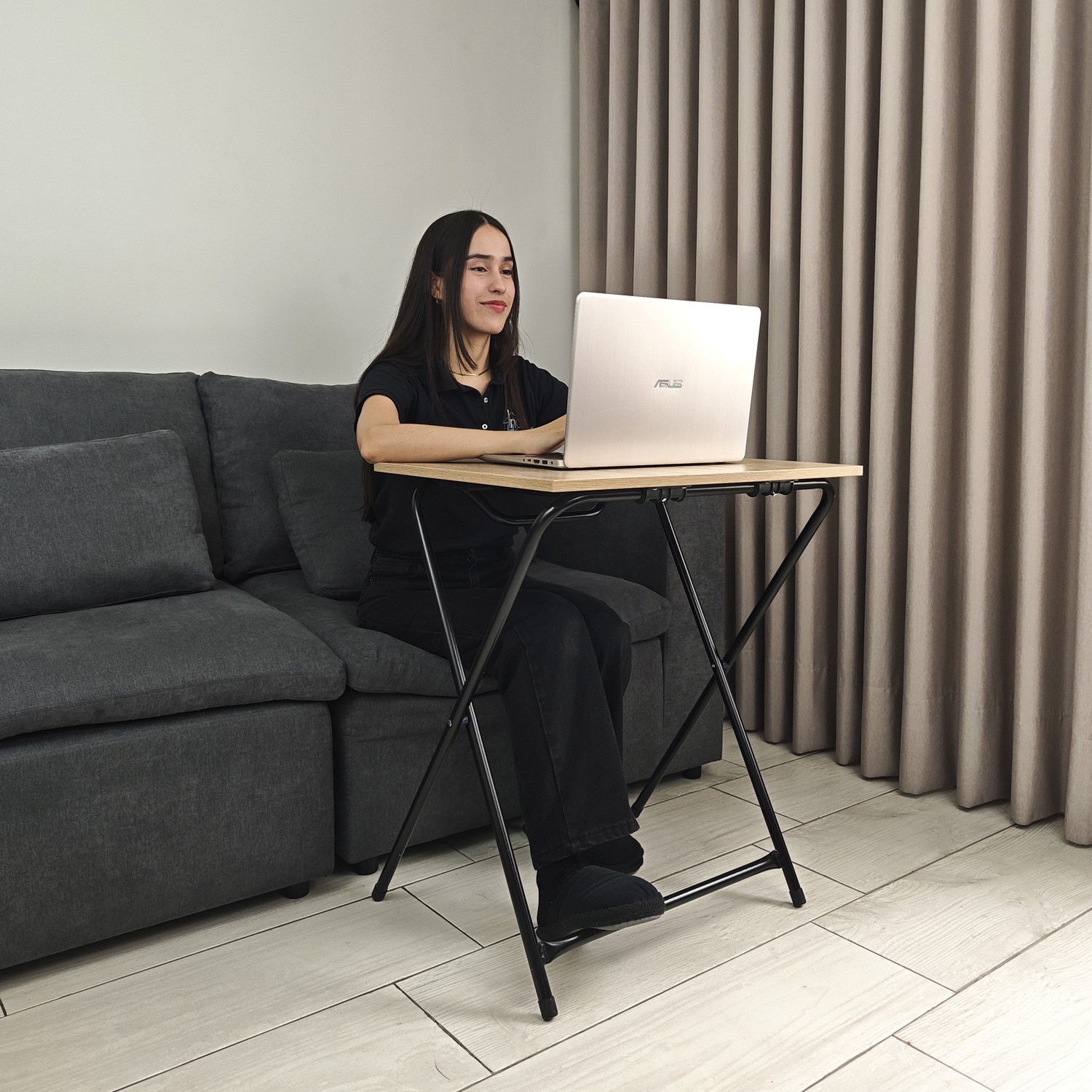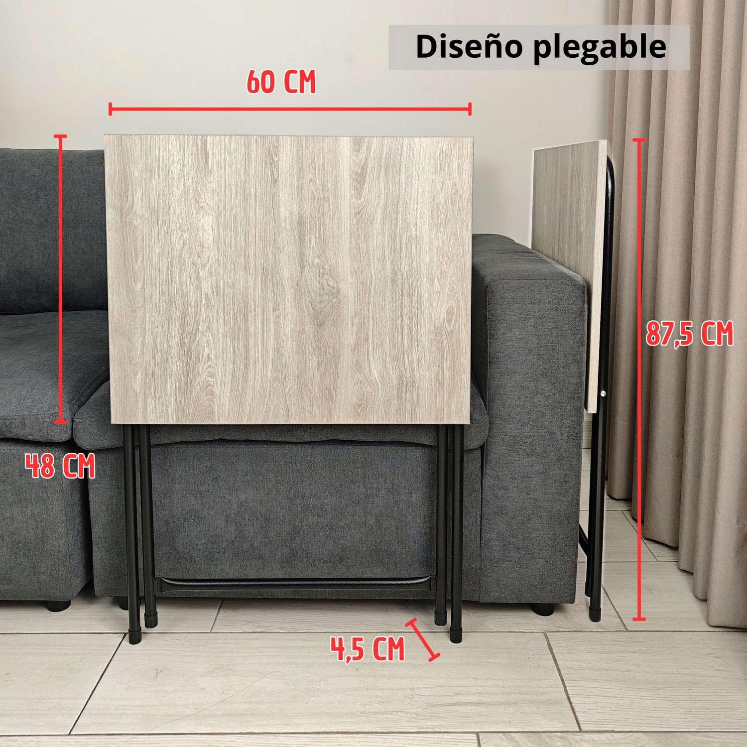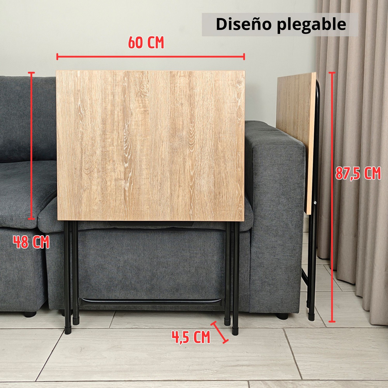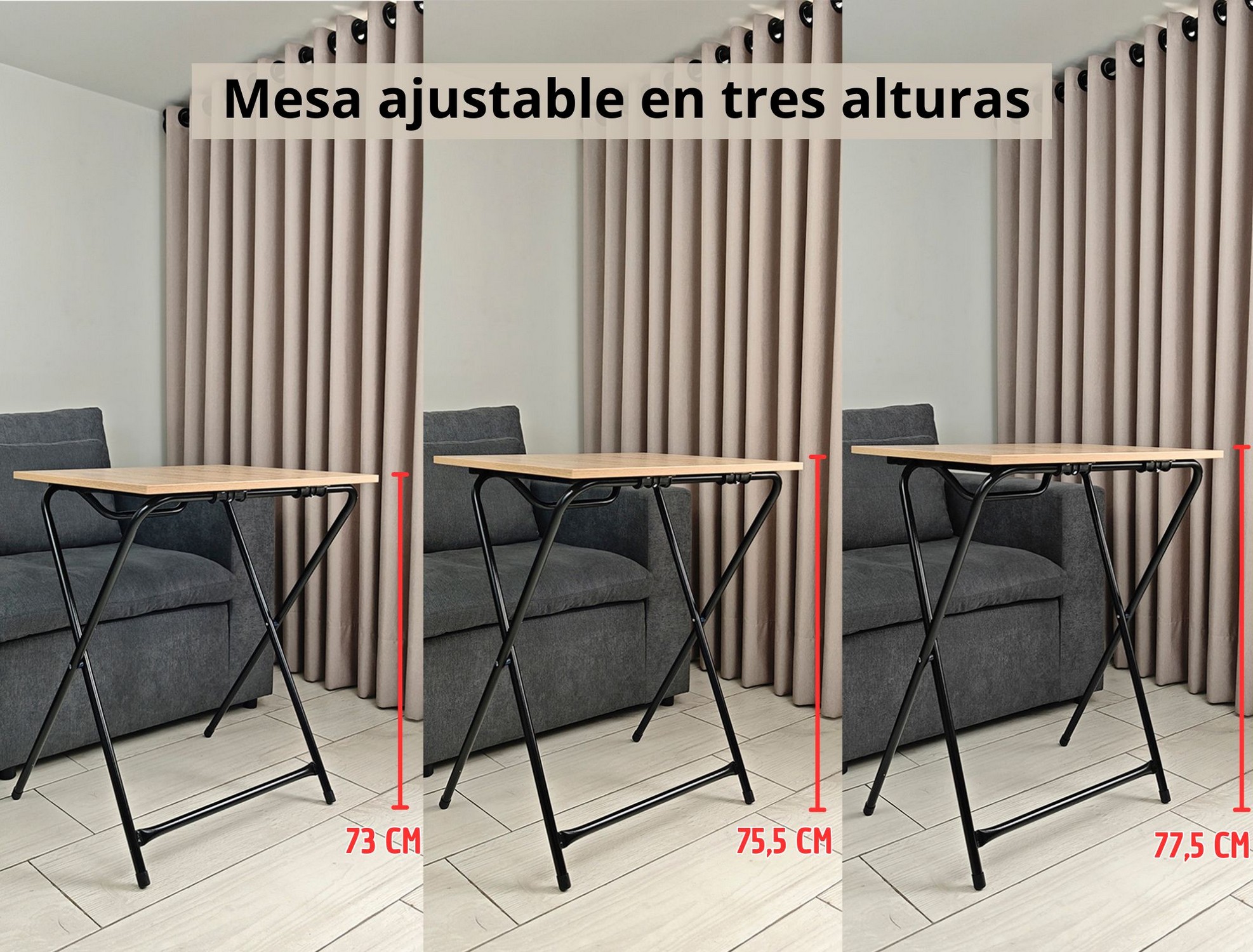Si lo que buscas es una mesa linda y resistente, entonces nuestra mesa plegable es para ti. Cuenta con un cajón para guardar accesorios, la estructura es en acero con pintura electrostática negra y las patas cuentan con tapones antideslizantes. Su superficie es en madera forrada en formica, lo que le da un toque moderno a tus espacios. Se pliega fácilmente para mayor comodidad a la hora de guardarla.