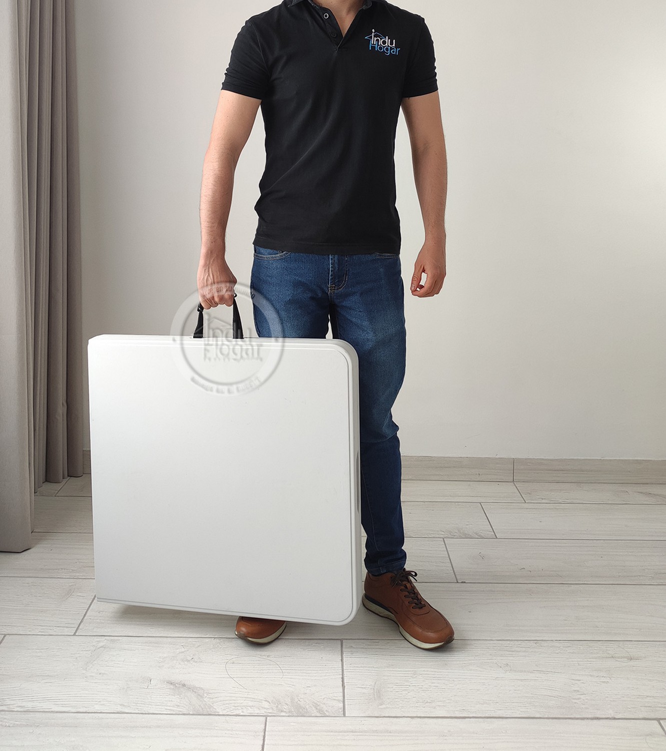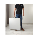 Novedosa mesa multiusos plegable en forma de maletín. Apta para ser utilizada como mesa para el computador, auxiliar para el hogar, eventos recreativos al aire libre tipo picnic y muchos usos mas; puesto que es estable, robusta y ligera. Fácil almacenamiento y traslado ya que se pliega en forma de maletín "Con manija para cargarla". (SILLAS NO INCLUIDAS)