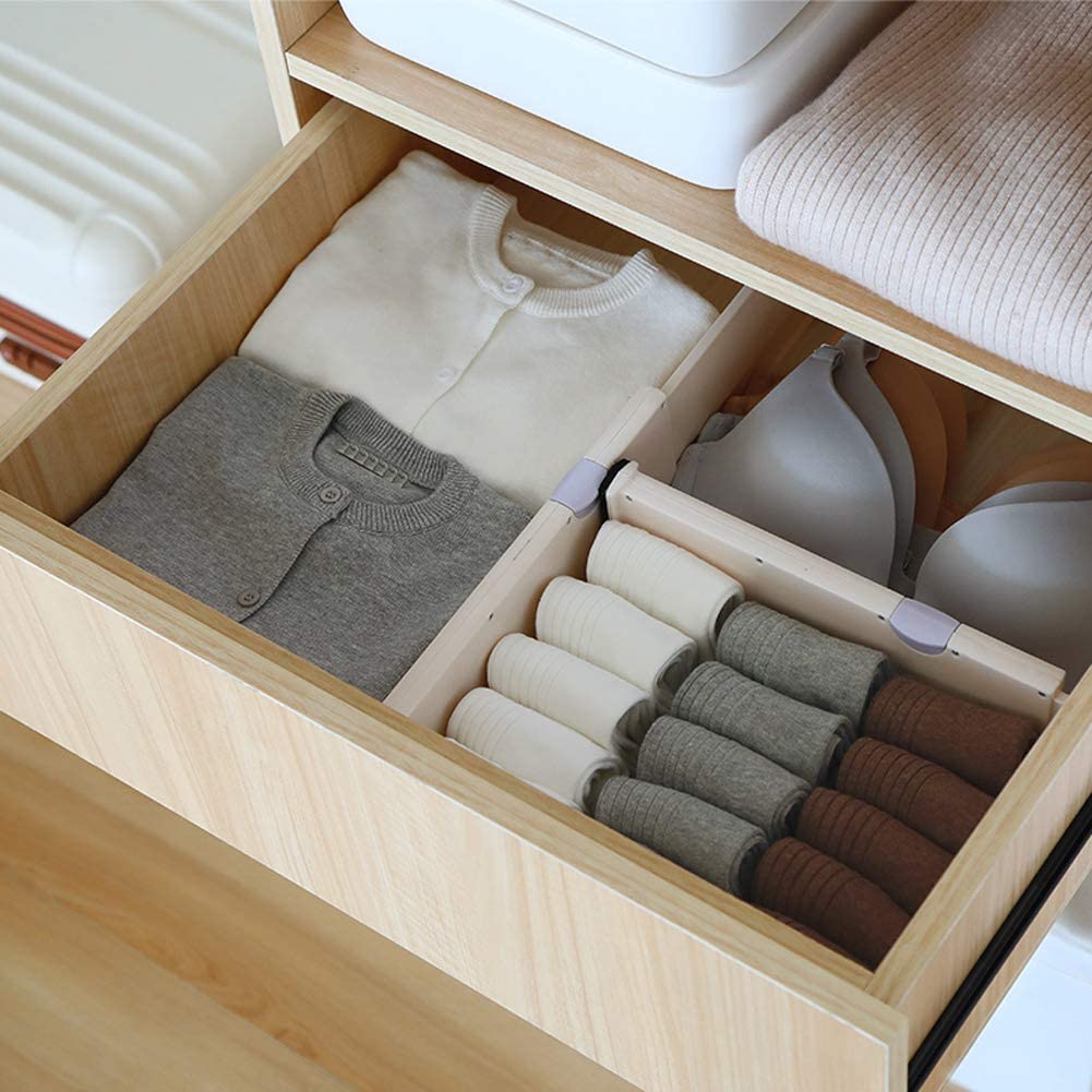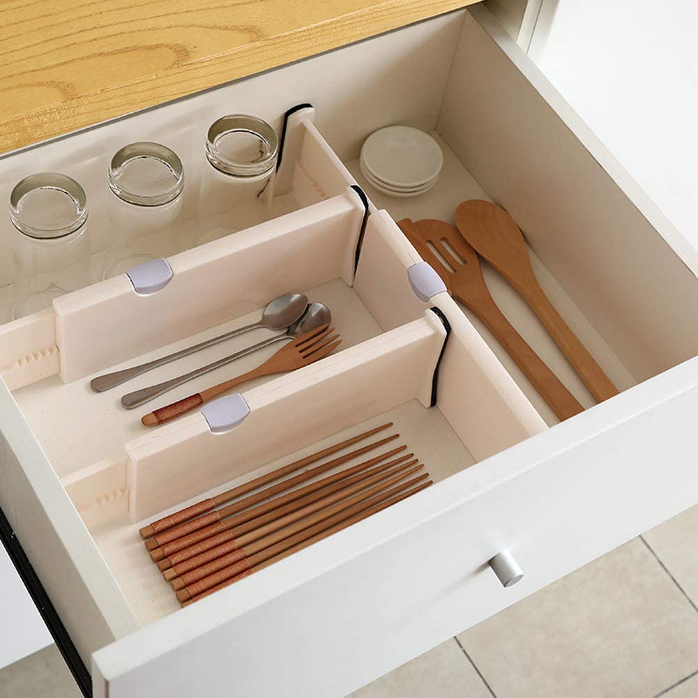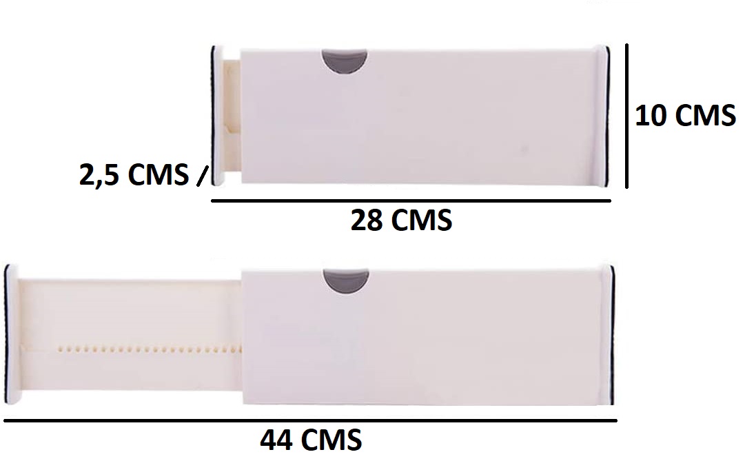 Divisor organizador de cajones extensible y ajustable: se desliza y se instala con un solo clic sin necesidad de herramientas o pegamentos. Simplemente levanta la palanca, colócalo en el cajón, ajusta y bloquea en su lugar. La potente tensión bloquea cada divisor en su lugar y se mantiene vertical. los extremos de estos organizadores de cajones están cubiertos con esponjas de espuma de alta calidad para que no rayen ni dañen las paredes internas del cajón. Este divisor multiusos se adapta a tus necesidades ya que se puede instalar en cualquier cajón de tu hogar u oficina. Por ejemplo, para separar los utensilios de cocina como cubiertos, vajilla, cuchillos; organizador de cajones para cosméticos en el tocador; separador de cajones para medias, ropa interior y otras prendas en el armario; separadores de cajones para toallas en el baño etc.