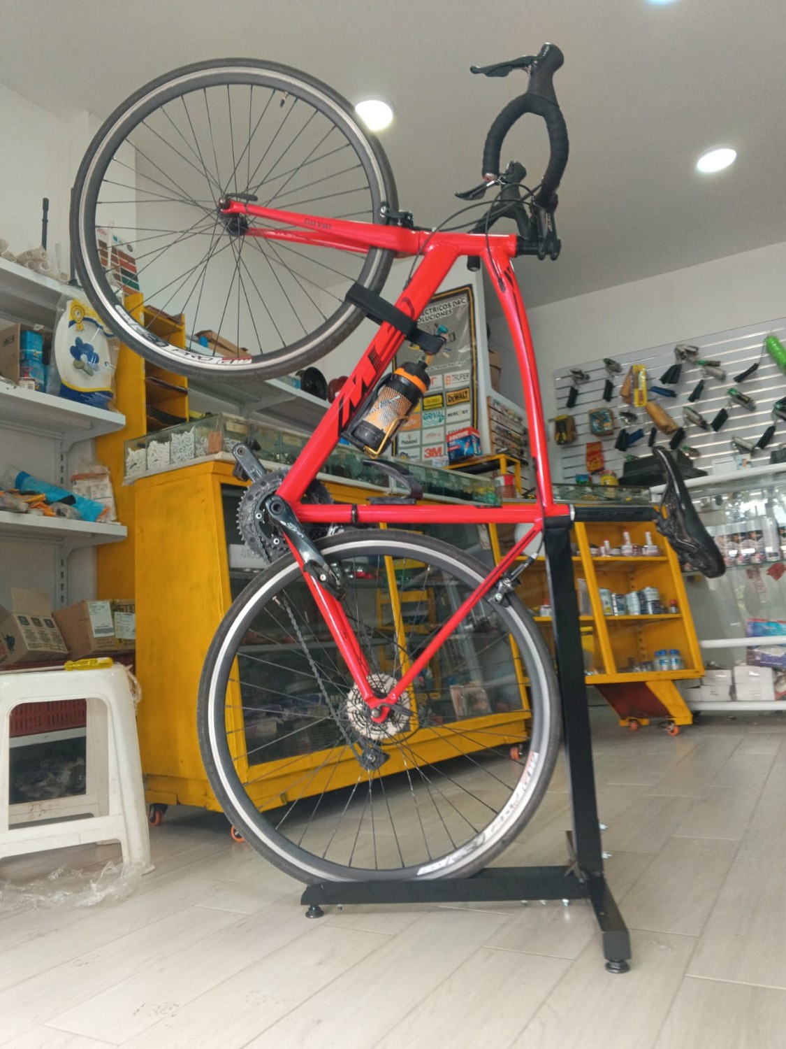 El soporte es muy seguro ya que su estructura es totalmente en tubo y lamina de acero con pintura electroestática negra que le dan a tu bicicleta un buen soporte y estabilidad. Incluye niveladores des piso y una correa que evita que la llanta delantera y el manubrio se muevan.