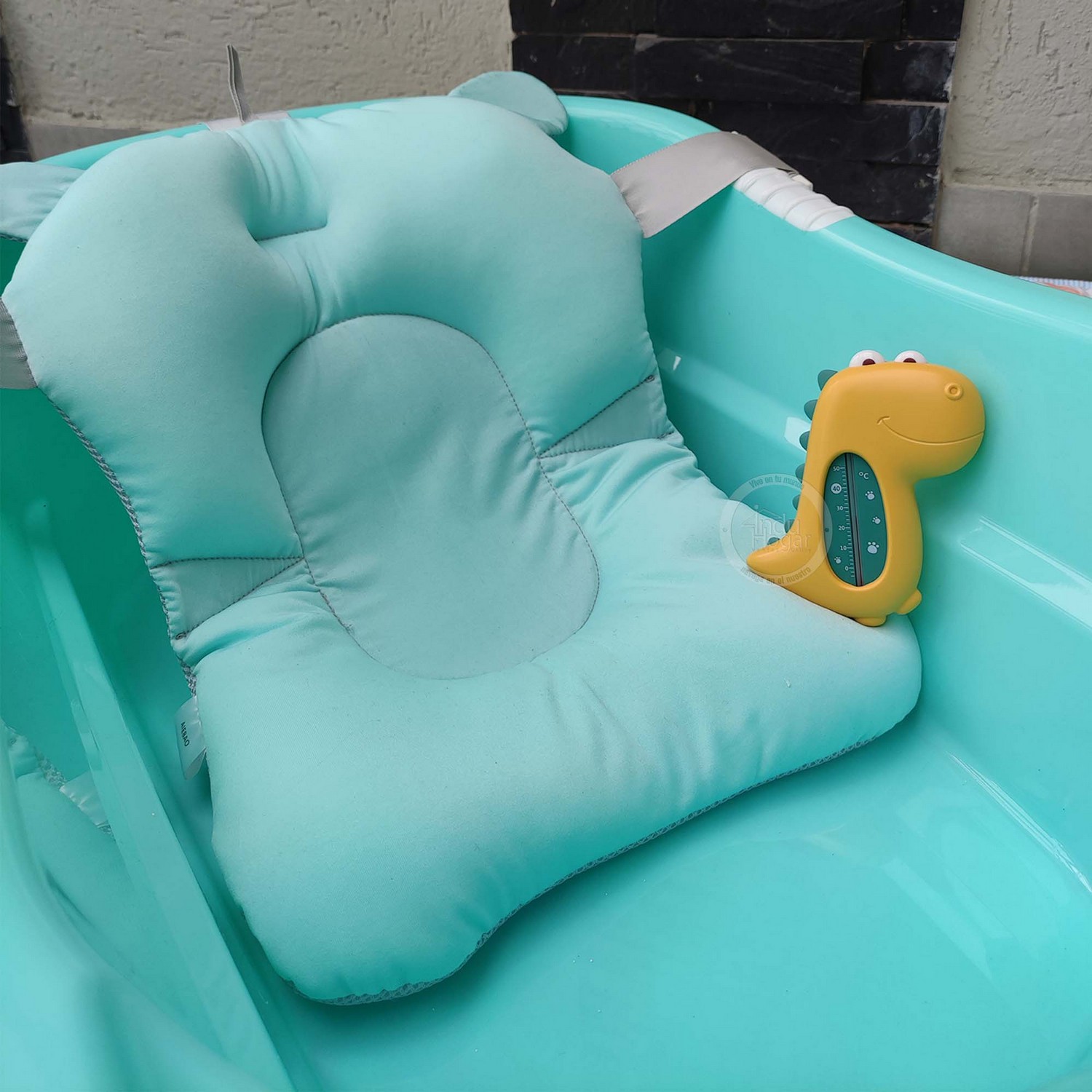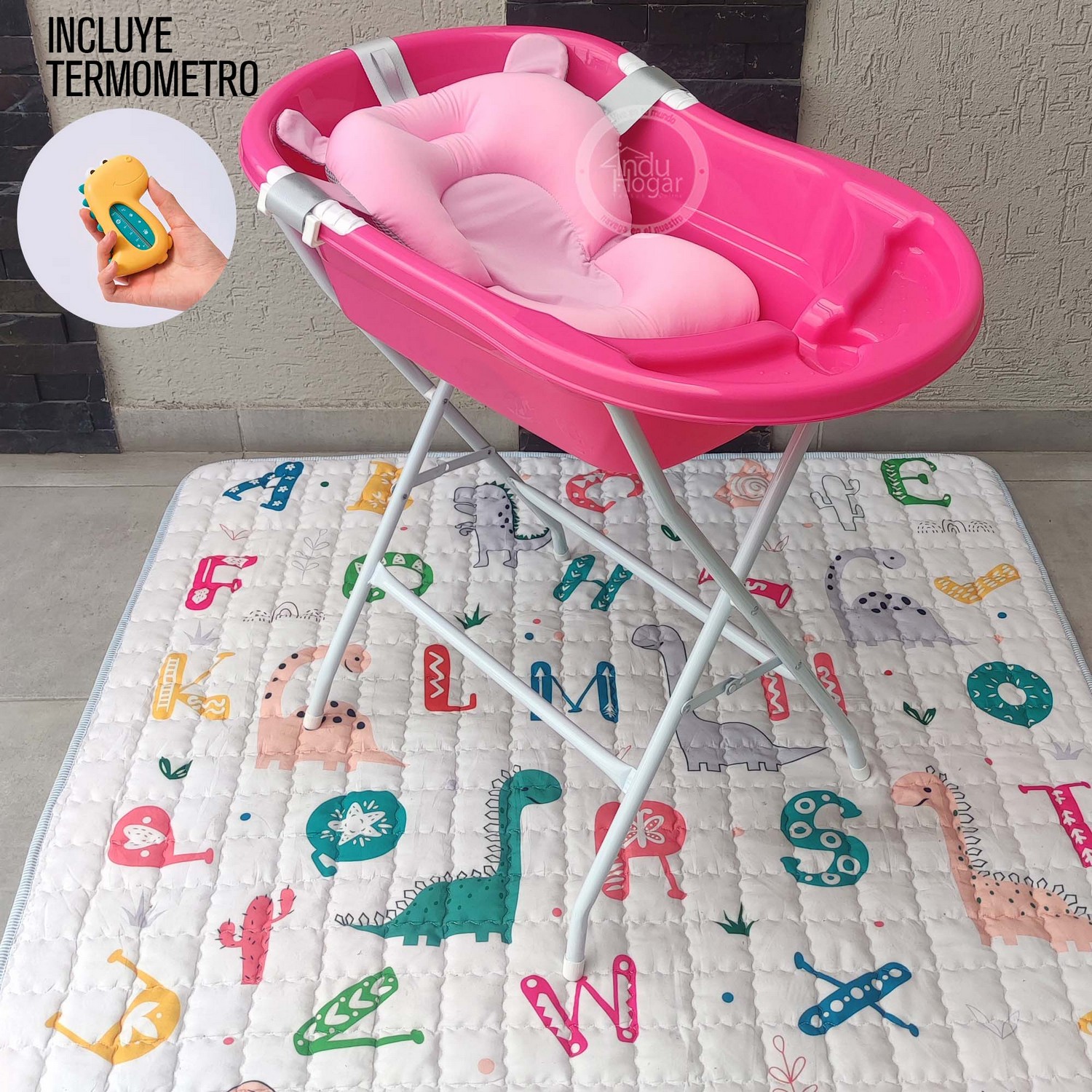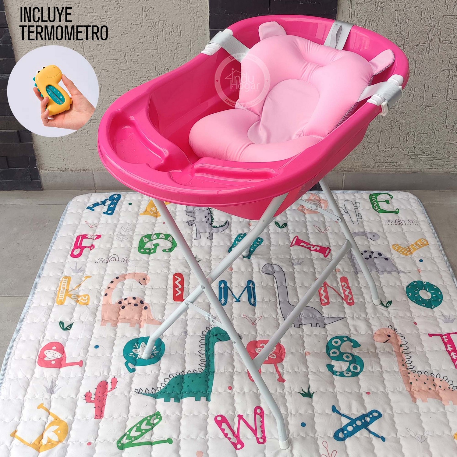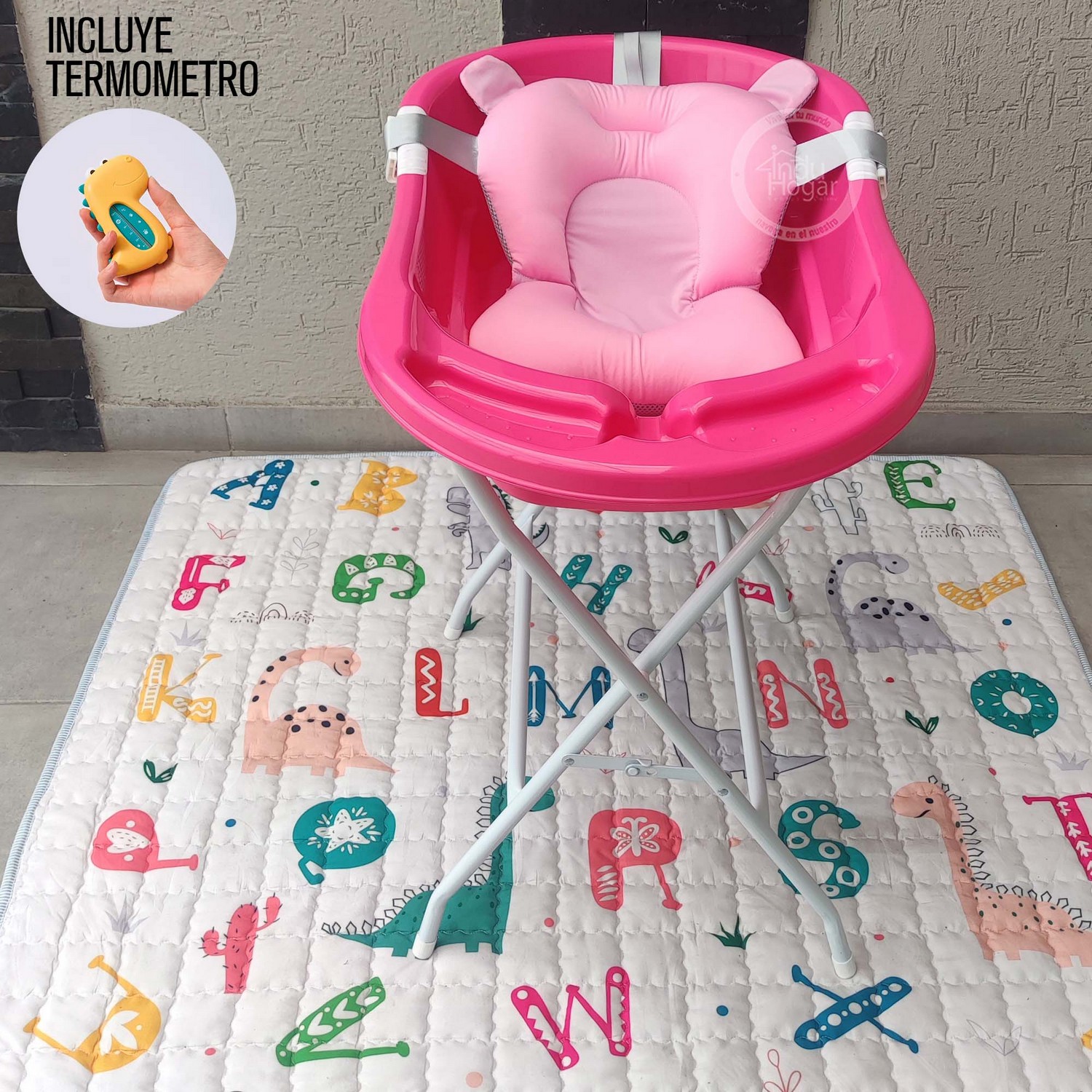 Disfruta cómodamente de la hora del baño con tu bebé, gracias a nuestra tina con soporte, el cual brinda la altura ideal para evitarte dolores de espalda. Además de tu comodidad, tu bebé también estará cómodo, ya que nuestro cojín ergonómico le brindará el confort adecuado y con el termómetro podrás asegurarte de que el agua esté a la temperatura ideal.