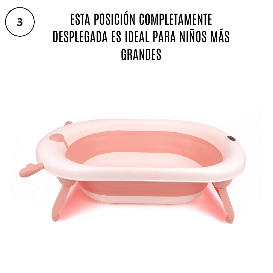 Práctica, segura y cómoda bañera 3 etapas plegable, puedes acomodarla hasta en tres posiciones según tus necesidades y las de tu bebé. La puedes guardar de manera fácil, gracias a que es completamente plegable. (DISPONIBLE ÚNICAMENTE EN COLOR ROSA)