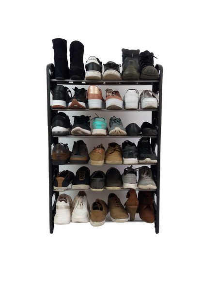 Práctica zapatera desarmable de seis entrepaños para 18 pares de zapatos. Diseñada para ser liviana, portable y desarmable.