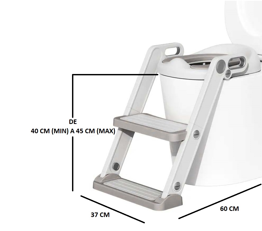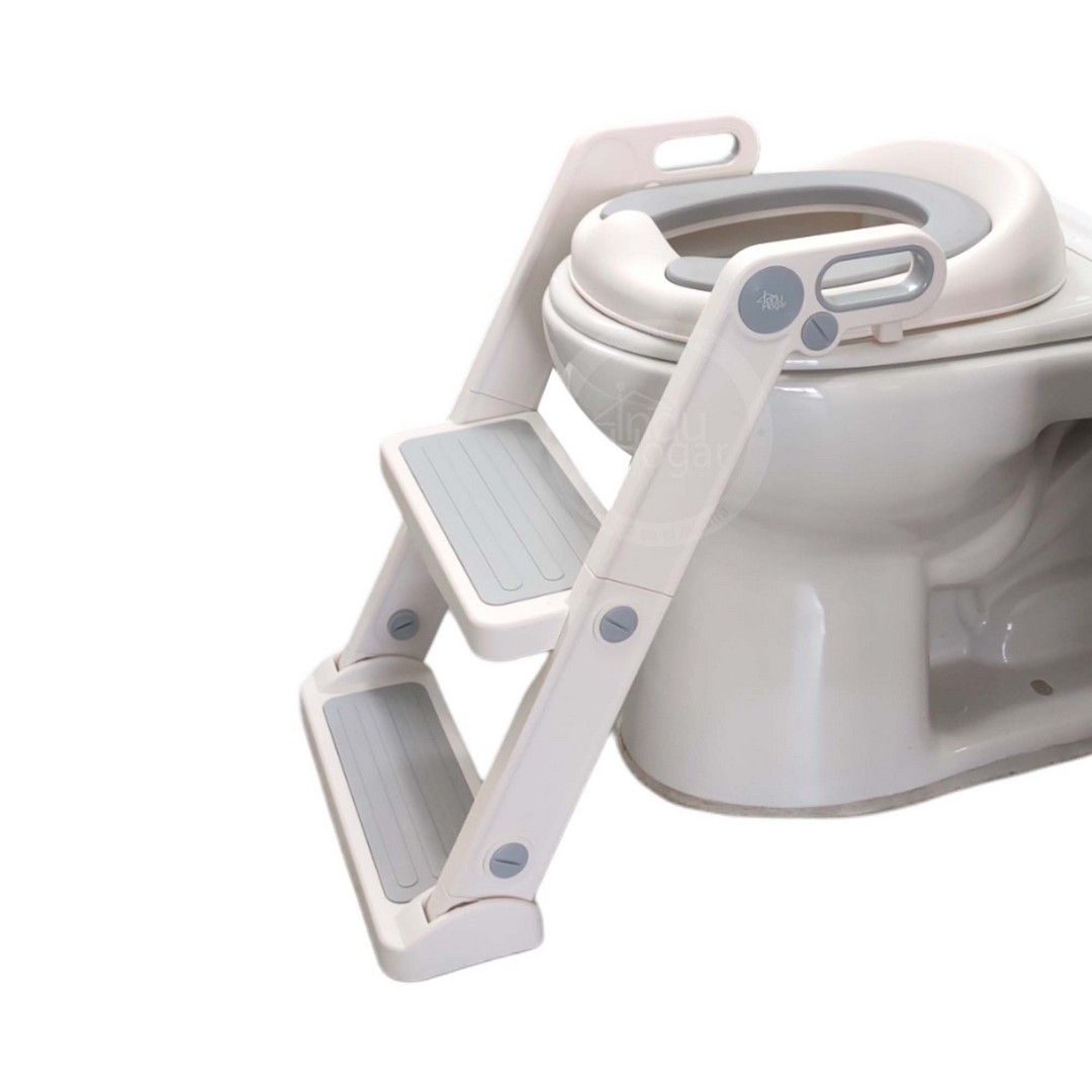 Asiento de entrenamiento plegable para ir al baño con escalera y cojín acolchado. Es la herramienta ideal que el niño pase de la vasenilla al uso del inodoro, pues ayudará a promover la independencia de tu hijo en la ida al baño.