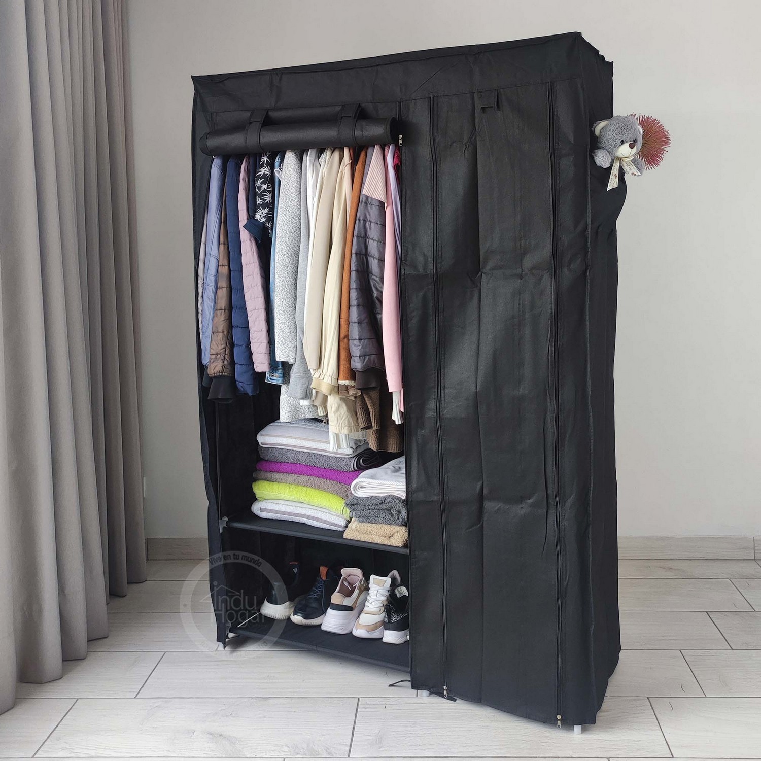 Práctico closet sencillo, está diseñado especialmente para ser resistente y al mismo tiempo, proteger tu ropa del polvo y la humedad, ya que su estructura es en tubo metálico y a diferencia de otros closets del mercado, sus entrepaños están mejorados, son fabricados en tela tifón gruesa que no cede y soporta más peso. Por otra parte, el forro está fabricado en tela no tejida, tela especialmente diseñada para proteger tu ropa del polvo, pelos de mascotas, humedad y demás factores que afectan nuestra ropa. Nuestro closet cuenta con 7 entrepaños y un espacio para colgar la ropa, es liviano, portable y totalmente desarmable.