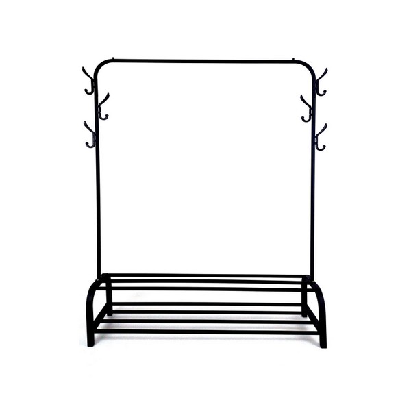 Practico perchero multifuncional 3 en 1 para organizar tus prendas y zapatos en el hogar/oficina o úsalo como exhibidor en tu tienda. Diseñado para ser desarmable y liviano pero con materiales resistentes ya que es en tubo metálico con terminaciones en pintura electro estática negro mate.