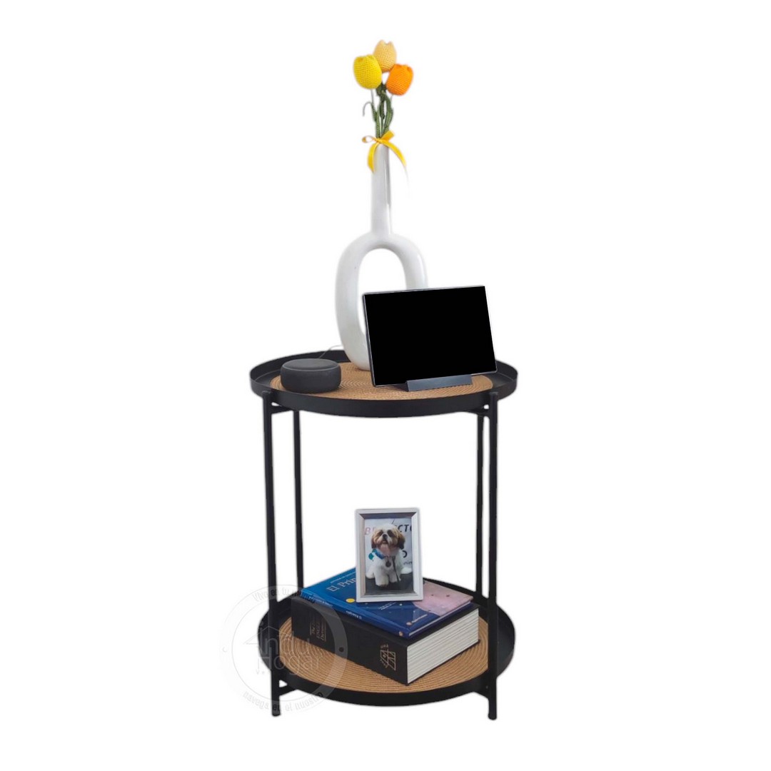 Practica mesa auxiliar con estructura en tubo y doble bandeja en lamina de acero con pintura electroestática negra. Gracias a que las bandejas son extraíbles y tiene bordes elevados, es segura para servir bebidas o alimentos. También la puedes usar como mesa de noche, mesa de centro o auxiliar para el hogar.
