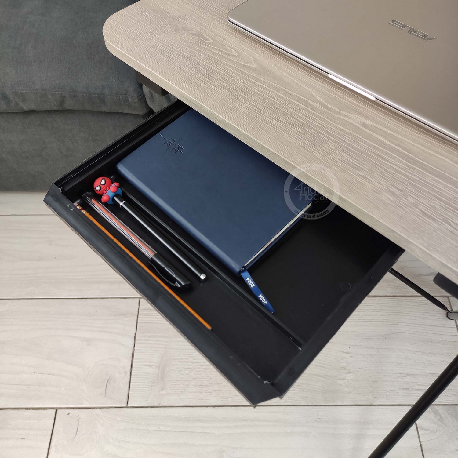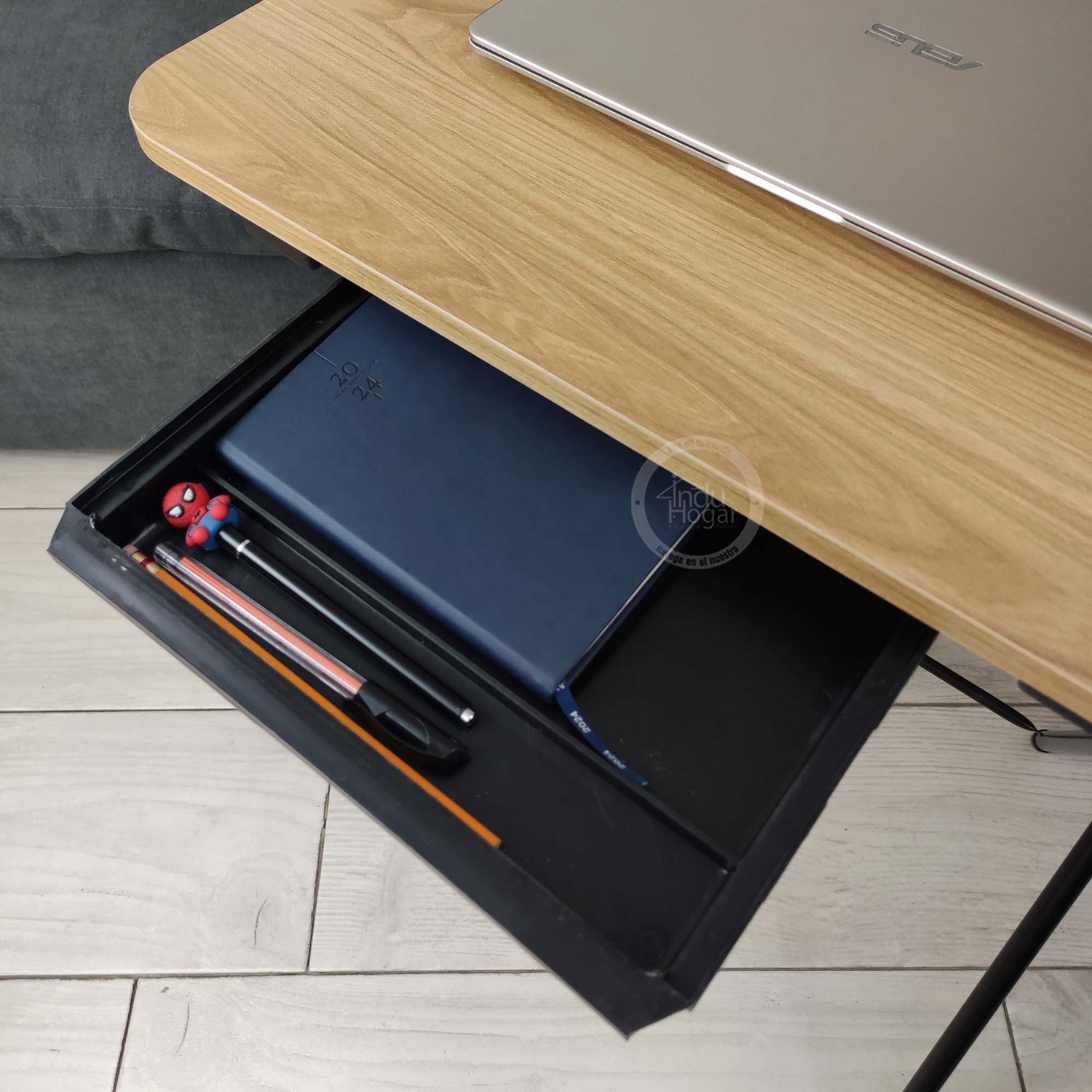 Si lo que buscas es una mesa linda y resistente, entonces nuestra mesa plegable es para ti. Cuenta con un cajón para guardar accesorios, la estructura es en acero con pintura electroestatica negra y las patas cuentan con tapones antideslizantes. Su superficie es en madera forrada en formica, lo que le da un toque moderno a tus espacios. Se pliega fácilmente para mayor comodidad a la hora de guardarla.