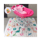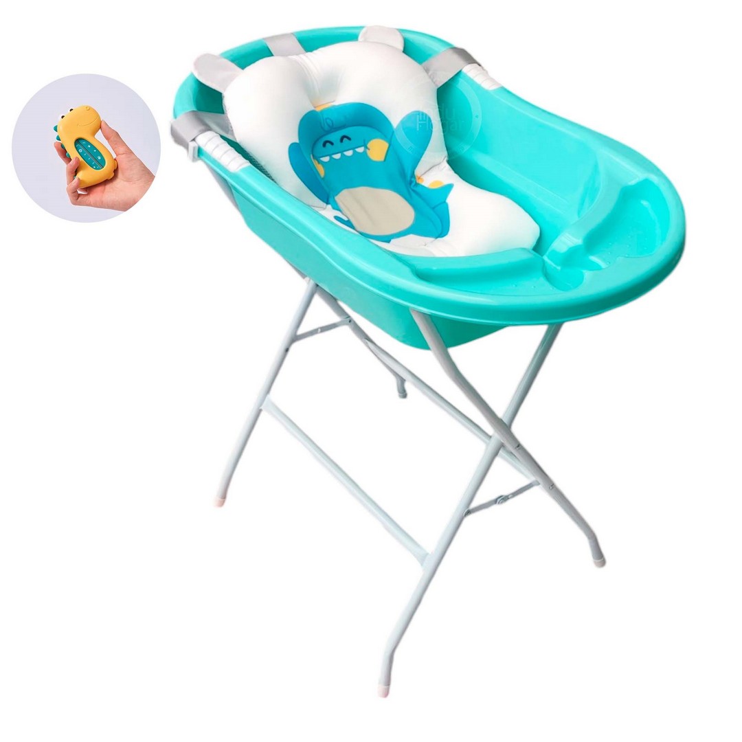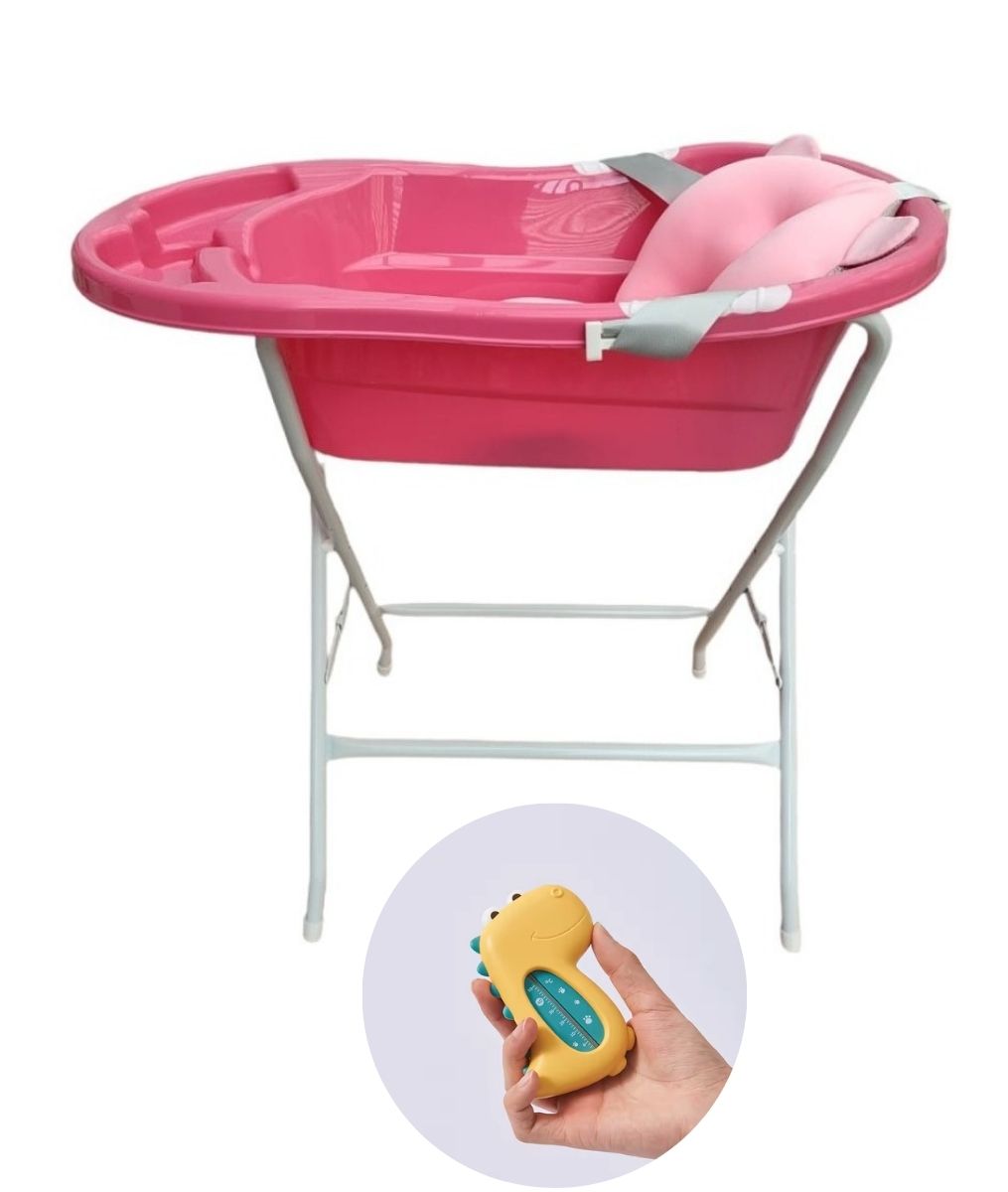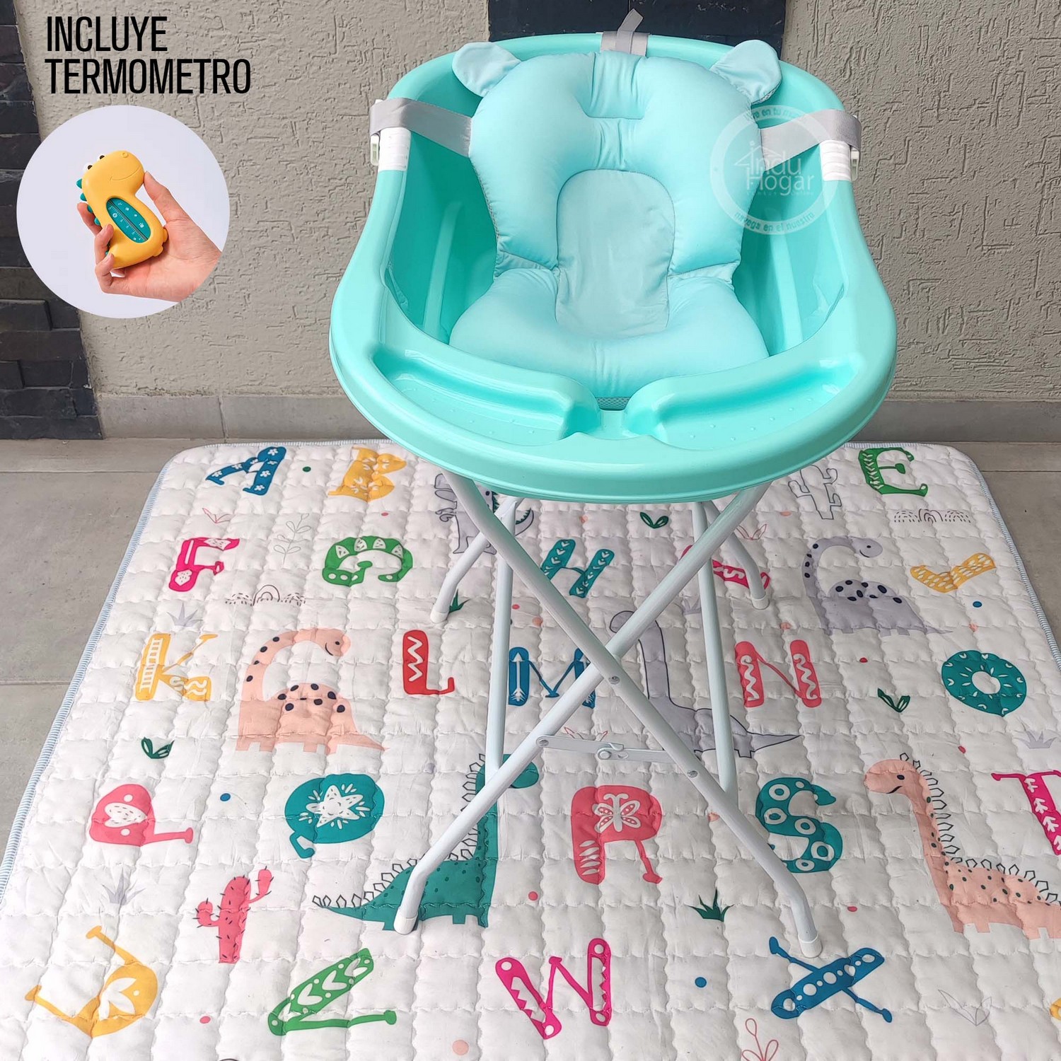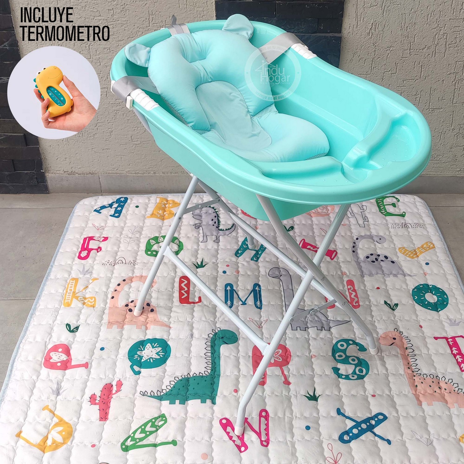 Disfruta cómodamente de la hora del baño con tu bebé, gracias a nuestra tina con soporte, el cual brinda la altura ideal para evitarte dolores de espalda. Además de tu comodidad, tu bebé también estará cómodo, ya que nuestro cojín ergonómico le brindará el confort adecuado y con el termómetro podrás asegurarte de que el agua esté a la temperatura ideal.