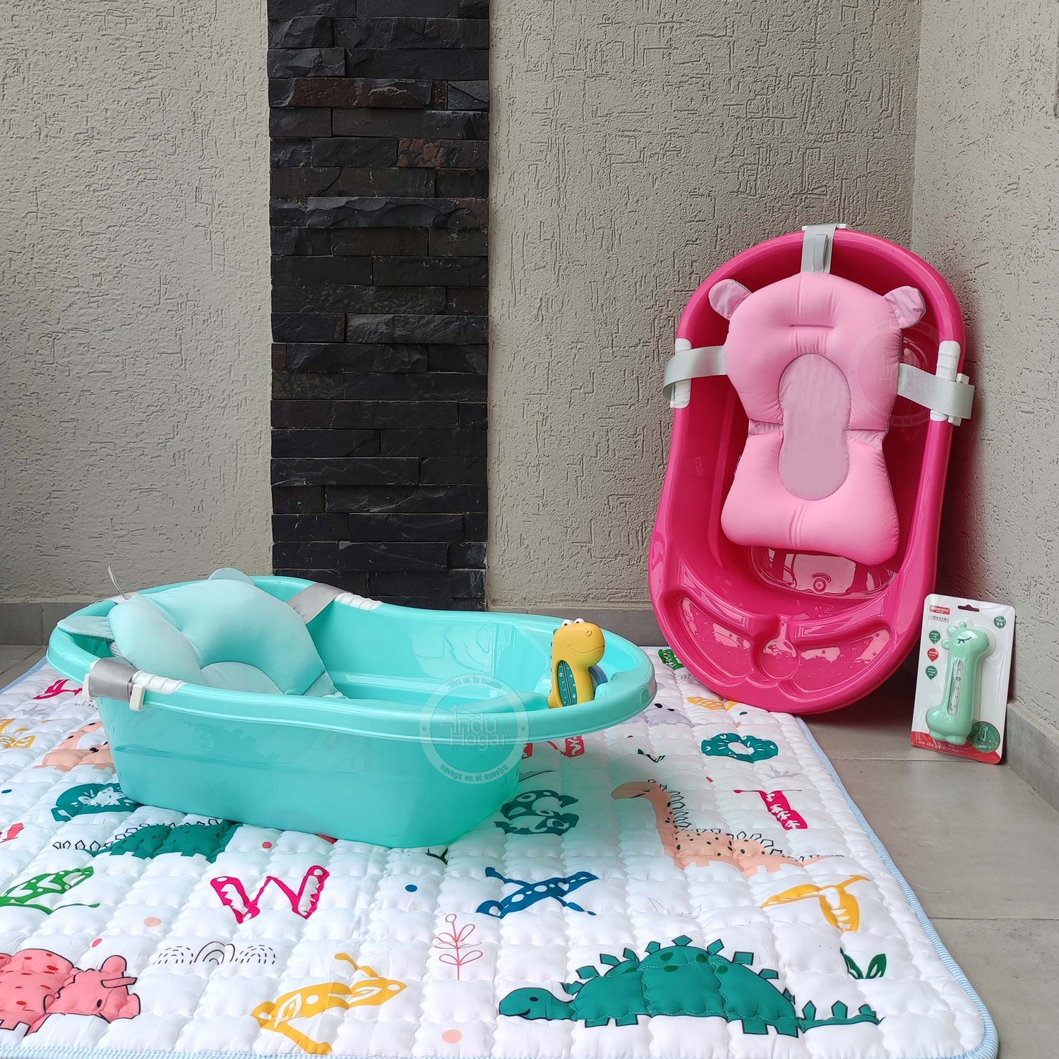 Practica tina para bebe con cojín ergonómico mas termómetro marca induhogar. (El termómetro se envía según disponibilidad, no es elegible).