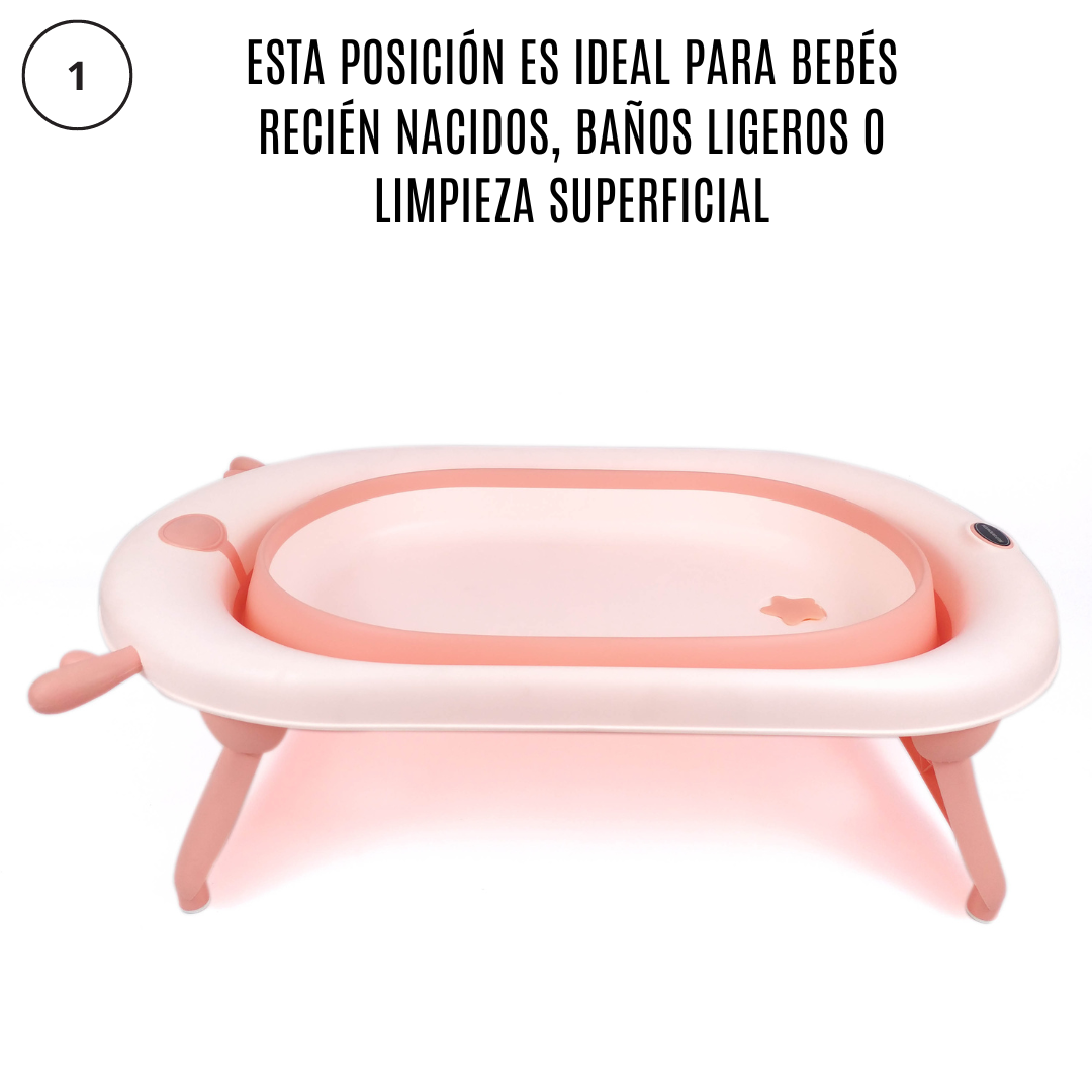 Práctica, segura y cómoda bañera 3 etapas plegable, puedes acomodarla hasta en tres posiciones según tus necesidades y las de tu bebé. La puedes guardar de manera fácil, gracias a que es completamente plegable. (DISPONIBLE ÚNICAMENTE EN COLOR ROSA)